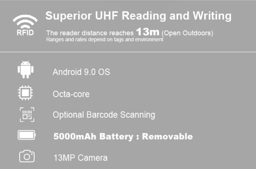 نظام Android 9.0 · UHF لمسافات طويلة للقراءة والكتابة